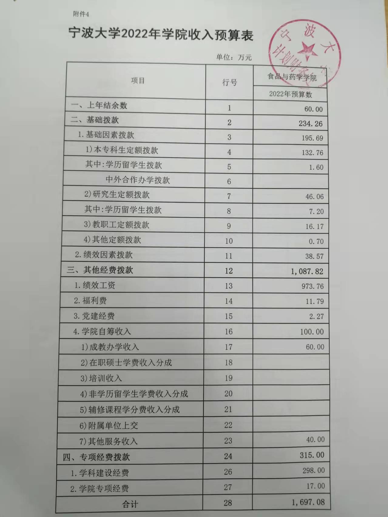 根据《香港六合彩开奖网 关于编制2022年度财务预算的通知》要求和《香港六合彩开奖网 食品与药学香港六合彩开奖网 财务管理办法》的相关规定,香港六合彩开奖网 2022年预算从2021年10月至2022年1月严格按照“部门申报→开会论证→上报→下达”的程序开展,经校财务处审核批准,特此公告给全体老师,请查看。