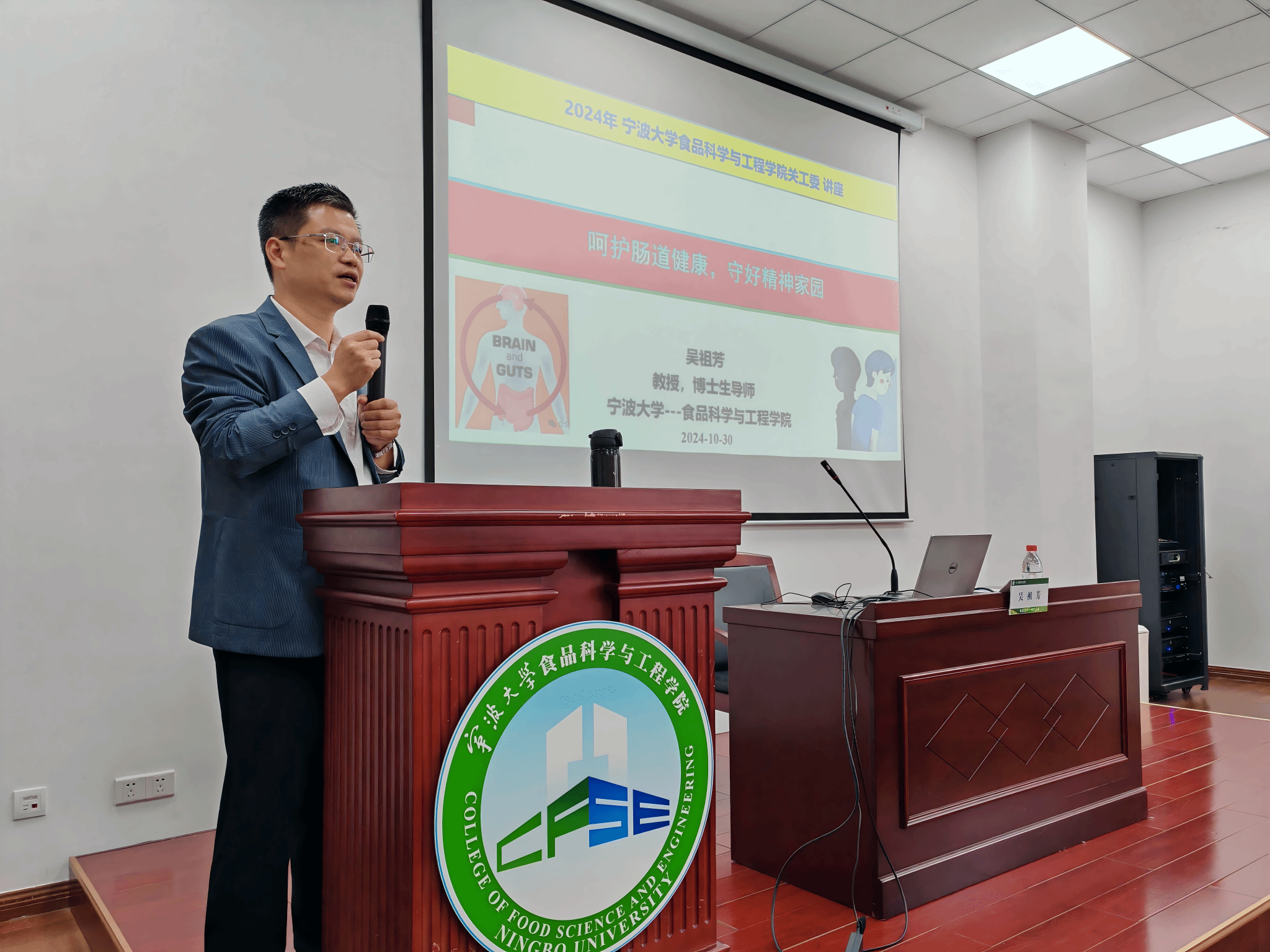 讲座中,吴教授还从饮食健康的角度出发,着重阐述了维护肠道健康的重要性,指出合理的饮食安排是调节肠道菌群平衡、促进身心健康的关键所在。他进一步分析了肠道健康与心理健康之间相辅相成、互为因果的内在联系,让在场的每一位听众都对这个既复杂又迷人的领域有了全新的理解和认识。