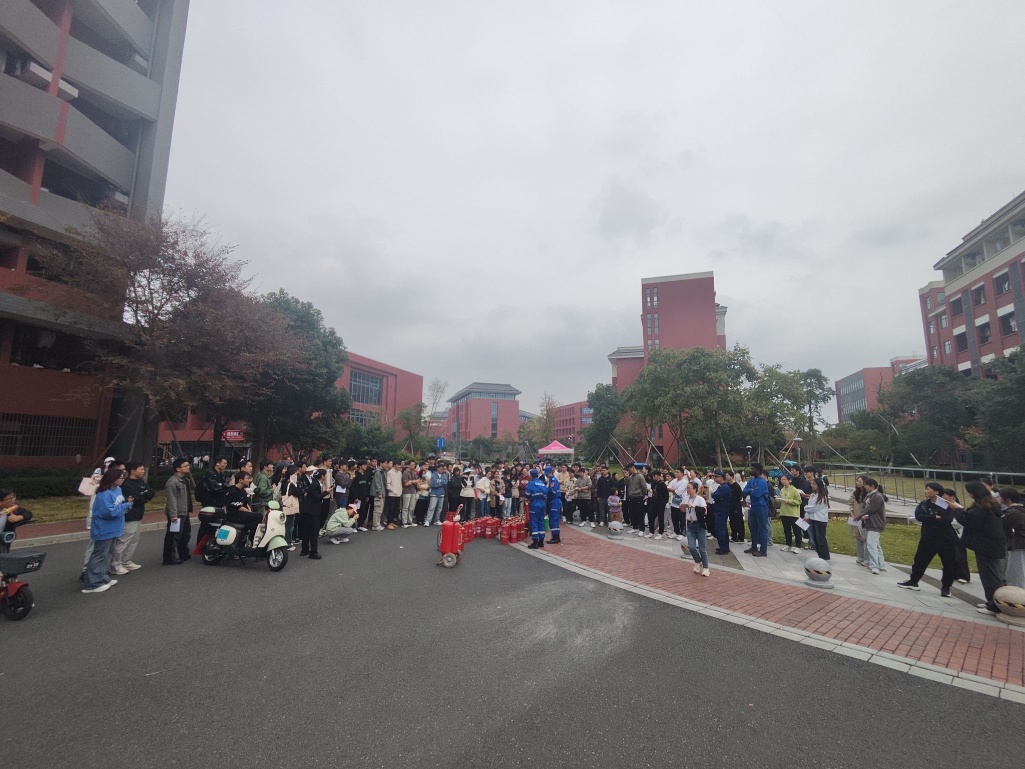 本次演练活动主题是“消防在行动,安全伴我行”,由梅山校区学生志愿消防队承办,包括消防演练和消防体验两个环节。
