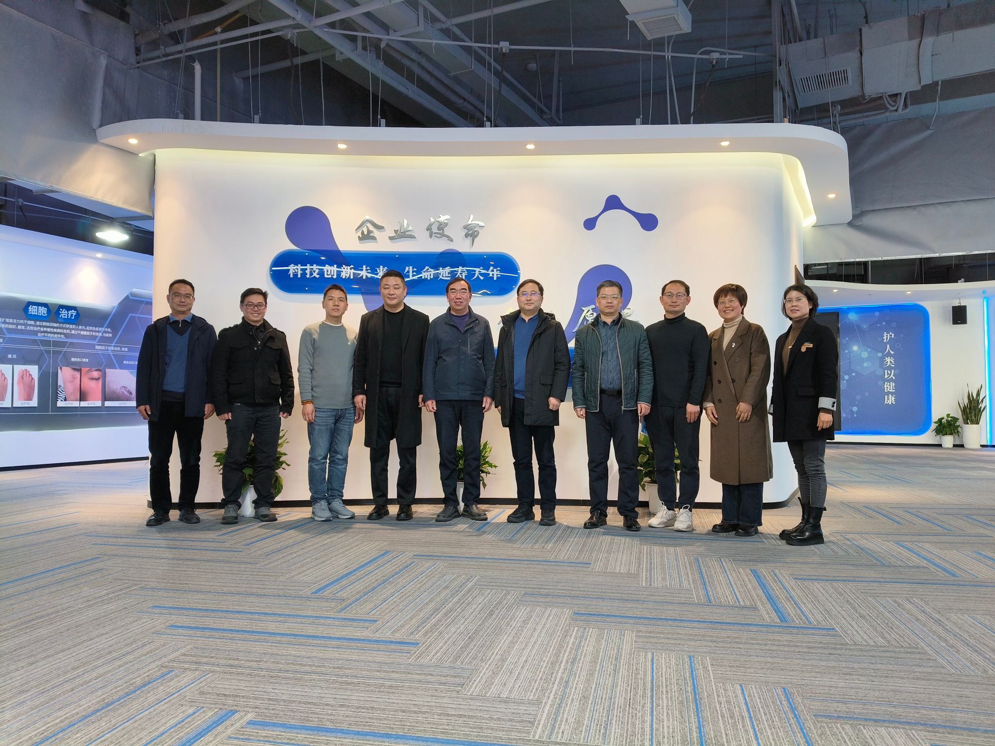 江北校友会执行会长李杰的陪同下,邵兴锋院长一行参观了天远生物的生命科技展馆、PCR基因检测实验室及干细胞研发中心,详细了解企业在基因检测、细胞治疗、精准健康管理等领域的核心技术布局。作为国家高新技术企业,天远生物已形成“科研—临床—市场”一体化的健康产业链,其全生命周期健康管理体系成果显著,为后续合作提供了坚实基础。