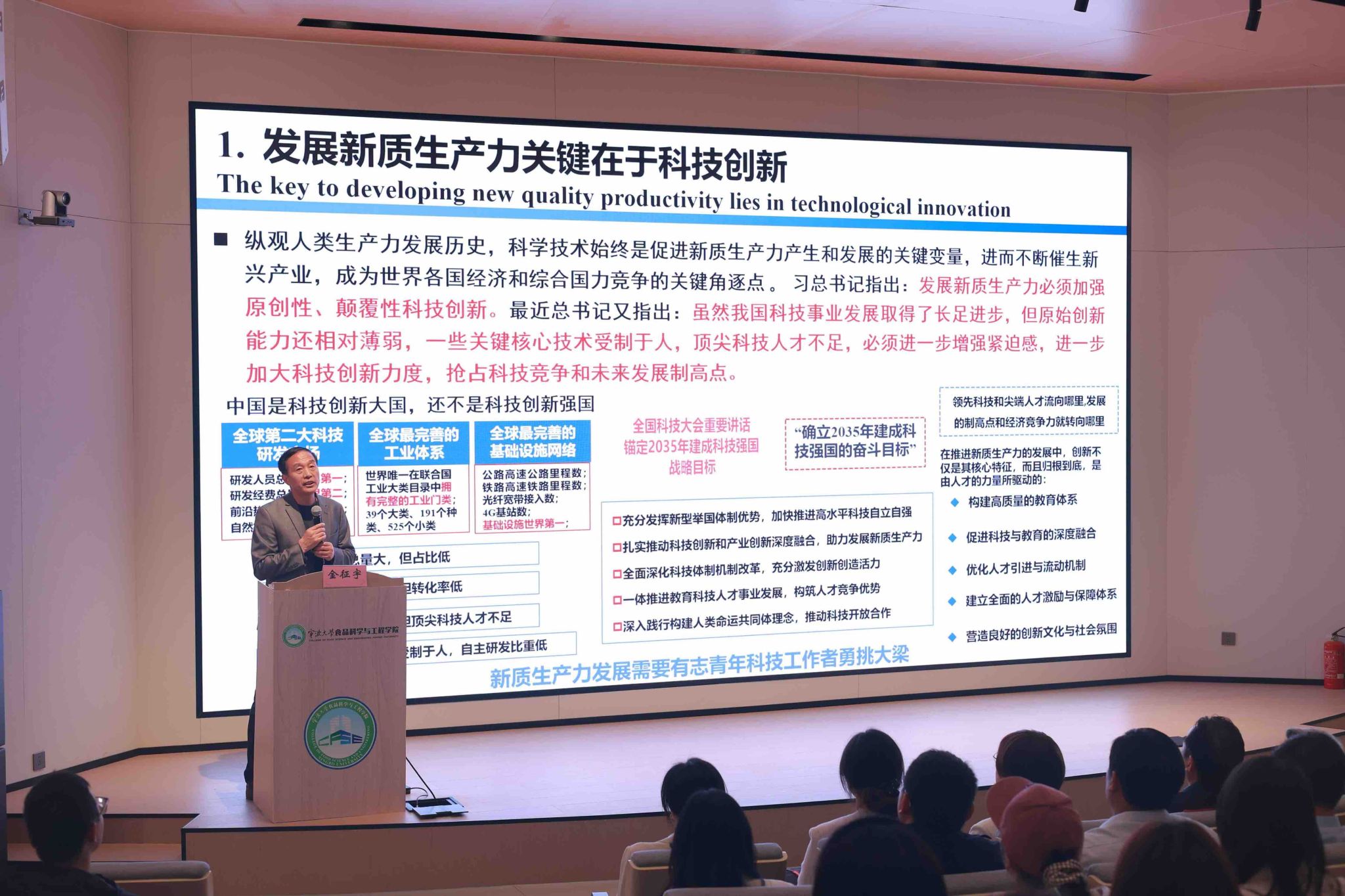 互动环节,对同学们的提问,金征宇院士都非常认真地给予了回应。他表示,中国是科技创新大国,但还不是科技创新强国,希望同学们做有志青年科技工作者,将来在新质生产力发展中勇挑大梁。