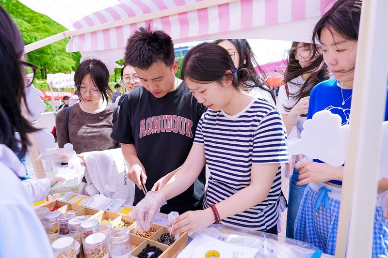 将活动氛围推向高潮的,当属 “食” 光物语非遗美食 DIY 区。这里聚焦传统酿造、手工点心等技艺,通过图文展板与实物陈列,系统展现传统食品的历史渊源与制作技艺。在专业教师和研究生团队的指导下,师生亲手制作传统中式糕点桔红糕与养生花茶。制作桔红糕时,古法手工技艺强调 “慢工出细活” 的匠人精神;调配养生花茶,则将现代营养学与 “药食同源” 的养生理念相结合。“原来传统美食里藏着这么多科学门道,自己动手制作,每一口都充满文化韵味。” 一位参与者感叹道。