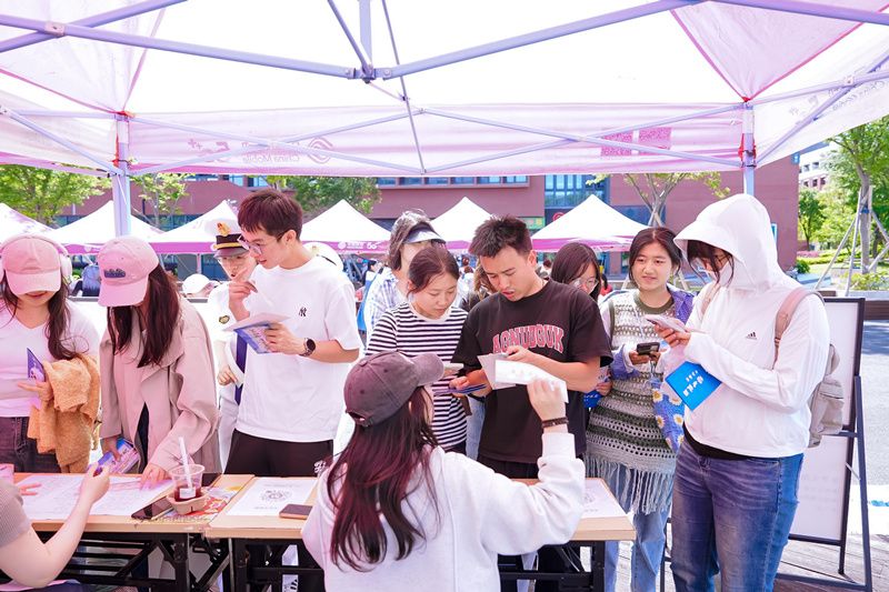 在 “食” 刻相伴特色食品品尝区,创新性的 “集‘食’行乐入场券” 成为活动的趣味主线。参与者扫码签到领取定制入场券后,便可开启一场知识与美食的双重探索。通过学习 “非遗食品”“健康饮食新趋势” 等主题展板,完成互动打卡获取特色 “食” 字印章,凭印章就能兑换美食试吃或非遗桔红糕 DIY 体验资格。不少同学表示:“在答题过程中,对‘大食物观’和‘健康中国’战略有了更直观的认识。”