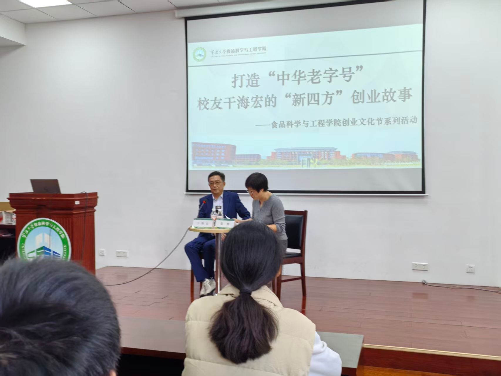 在竺银康楼120会议室成功举办校友创业分享会。优秀校友干海宏先生回归母校,以“打造‘中华老字号’”为主题,深情讲述了他创立并发展知名食品品牌“新四方”的艰辛与辉煌历程,为在校学子带来了一场关于梦想、坚守与创新的精神盛宴。在香港六合彩开奖网