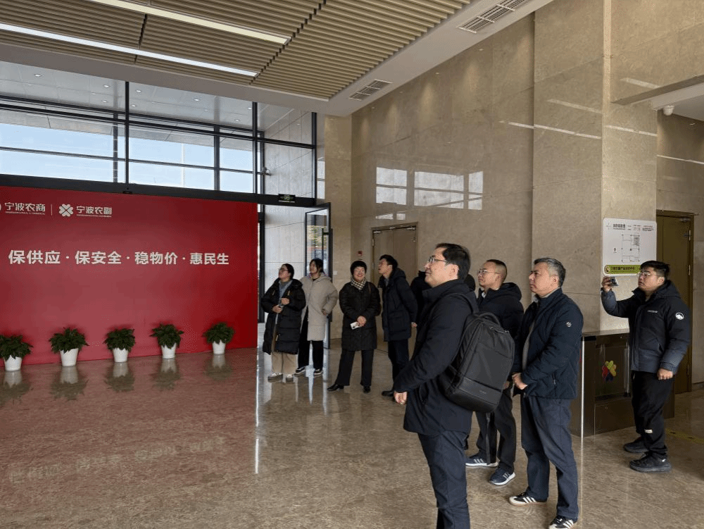 在工作人员的陪同下,走访团队先实地参观了宁波农副产品物流中心,先后走进生鲜仓储区、冷链配送中心、农产品交易大厅和数字商贸协同创新中心,详细了解了物流中心的仓储布局、冷链运输体系、农产品集散流程、质量安全监管措施。