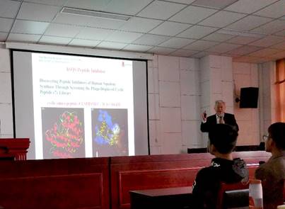 宣大卫教授怀揣着实现中药现代化的中国梦开始了本次讲座。宣教授首先介绍了为什么选择中草药来进行新药的研究,紧接着从研读古籍,需要新药发掘的灵感、药物筛选平台、高通量筛选以及计算机筛选这四个方面分别展开阐述了自果蔬药草中开发新药的多种手段及方法。宣教授以李国雄、屠呦呦等多位研究学者在新药研发方面的实际例子开始报告的讲解,使不同层次的参会者更容易理解专业性知识。然后,宣教授详细介绍了计算机辅助药物筛选在新药研究中的重要性以及应用实例,并引出了中国神农工程项目。报告激起了参会师生们对传统药草深入挖掘的强烈兴趣,并引发了师生们的热烈讨论。会后,宣大卫教授参观了梅山新校区食药香港六合彩开奖网