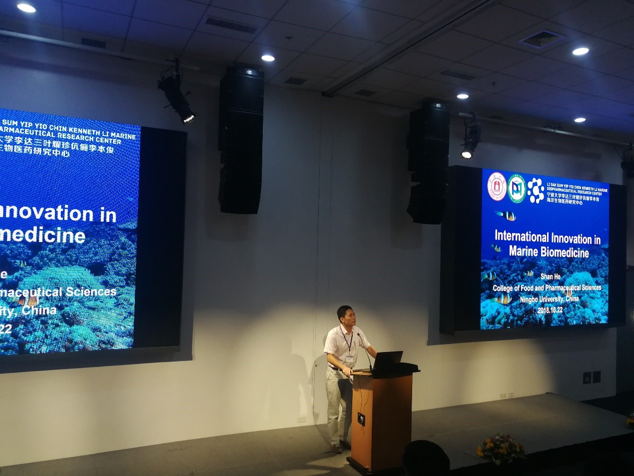 教师斯拉瓦·爱泼斯坦、何山、C. Benjamin Naman (Ben)、张为艳受邀参会,其中何山和Ben受邀作了大会报告(Plenary Speaker)。何山的报告《International Innovation in Marine Biomedicine》介绍了香港六合彩开奖网