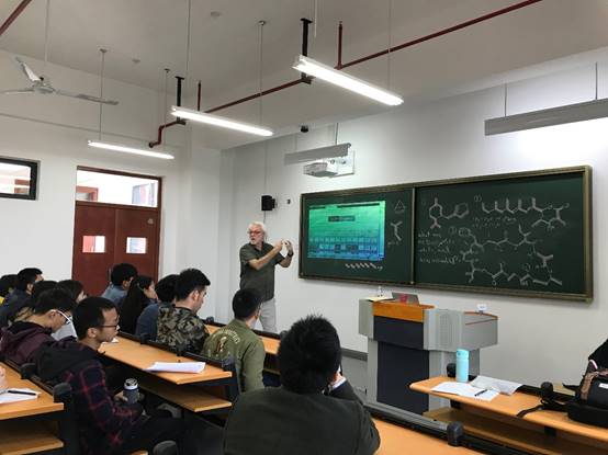 包玉刚讲座教授、美国加州大学圣地亚哥分校Scripps海洋研究所William Gerwick教授给海洋药学本科生开设为期两天的集中性mini课程。Mini课程讲授了两个主题, 一个主题是Marine Terpenes and their Biosynthesis, 另一个主题是Non-Ribosomal Peptide Synthetase。