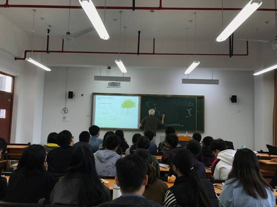 William Gerwick教授长期致力于海洋天然药物的研究,注重海洋天然产物在生物医药方面的应用,尤其是在抗癌、抗炎以及治疗热带传染性疾病等方面的研究成果突出。萜烯和非核糖体肽是两大类非常重要的海洋天然产物。William Gerwick教授详细地介绍了这两大类海洋天然产物的生物合成机制,他具有扎实的理论功底、清晰标准的美式发音、深入浅出的讲解、理论结合案例的授课方式引起了学生的兴趣和专注。整个课程授课期间,学生认真听讲,师生互动活跃,在讲授完理论内容后,William Gerwick又在课程上给了学生很多实践的练习,使每一个学生都有上黑板练习的机会,使学生很好地掌握课程内容。该mini课程得到了李达三叶耀珍伉俪李本俊海洋生物医药发展基金和海洋生物医药国家111引智基地的资助。