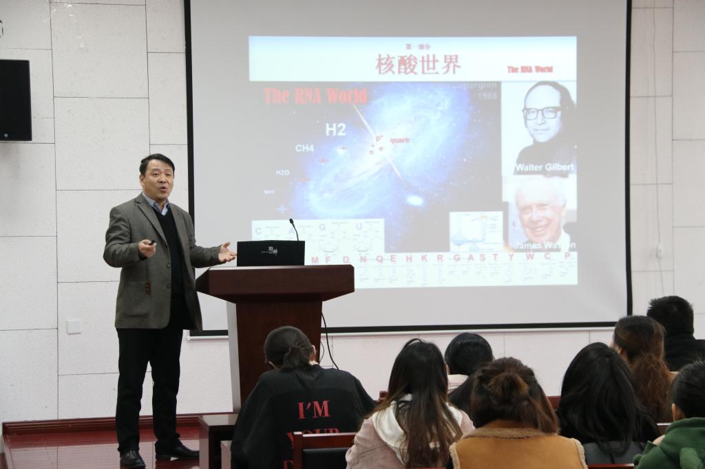 讲座内容分为三个部分,第一部分杨教授介绍了核酸世界,RNA起源的分子进化理论,阐述了双链RNA作为最原始生命起源的理论,以及dsCARE抗未知病毒传染病,第二部分杨教授介绍了蛋白质世界,提出了重要的理论问题:天然蛋白质中的氨基酸多样性以及天然蛋白质中的“非编码氨基酸”?证实了非编码氨基酸是氨基酸多样性的表现形式,并且非编码氨基酸对生命进化具有重要启示。杨教授团队运用质谱解释了非编码氨基酸的可测序,非编码氨基酸作为肿瘤标记物,在癌症的诊断和治疗中具有广阔的前景。杨教授在第三部分介绍了人类重大疾病氨基酸多样性计划,推动蛋白质维度的精准医疗产业化。