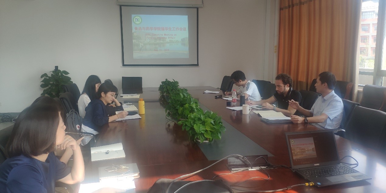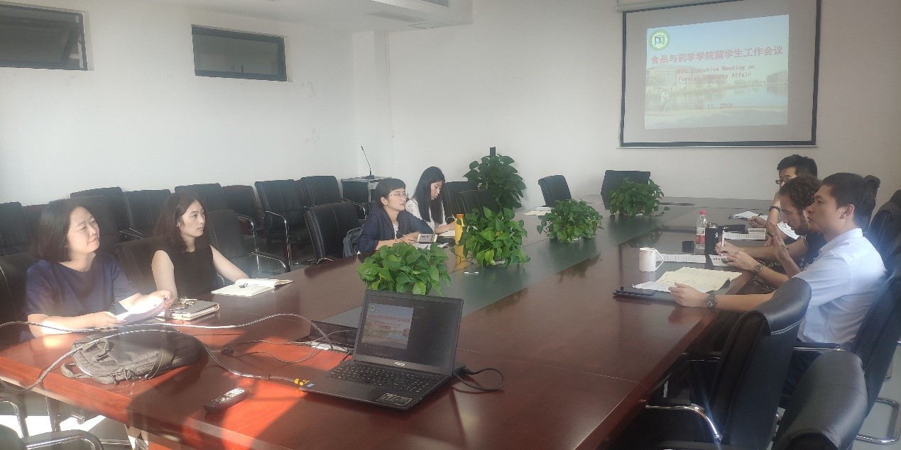 于2019年9月11日下午,在梅山校区竺银康楼202会议室召开了留学生工作会议。会议由何山副院长主持,院党委书记、学工办主任、本科教学秘书、人事秘书、外事秘书、海洋药学系主任和副主任参加了会议。