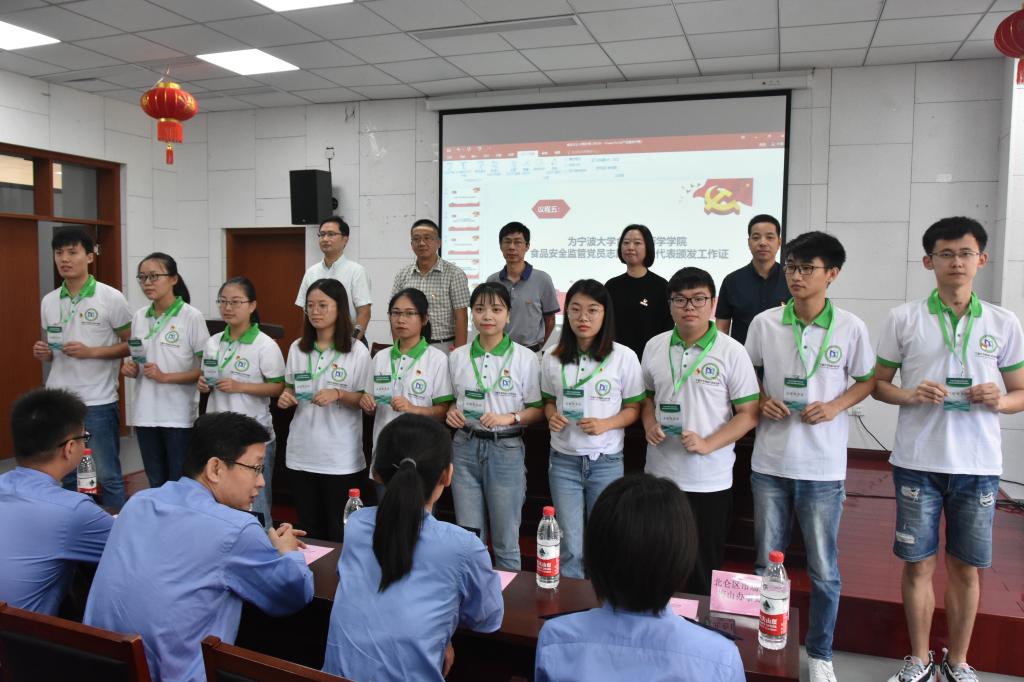 食品安全监管志愿服务队代表颁发了志愿服务证。成立仪式后,北仑区市场监管局梅山办事处副主任丁苗娟为广大学生党员们带来了一堂微党课及食品安全培训,为其后的食品安全监管实践奠定基础。