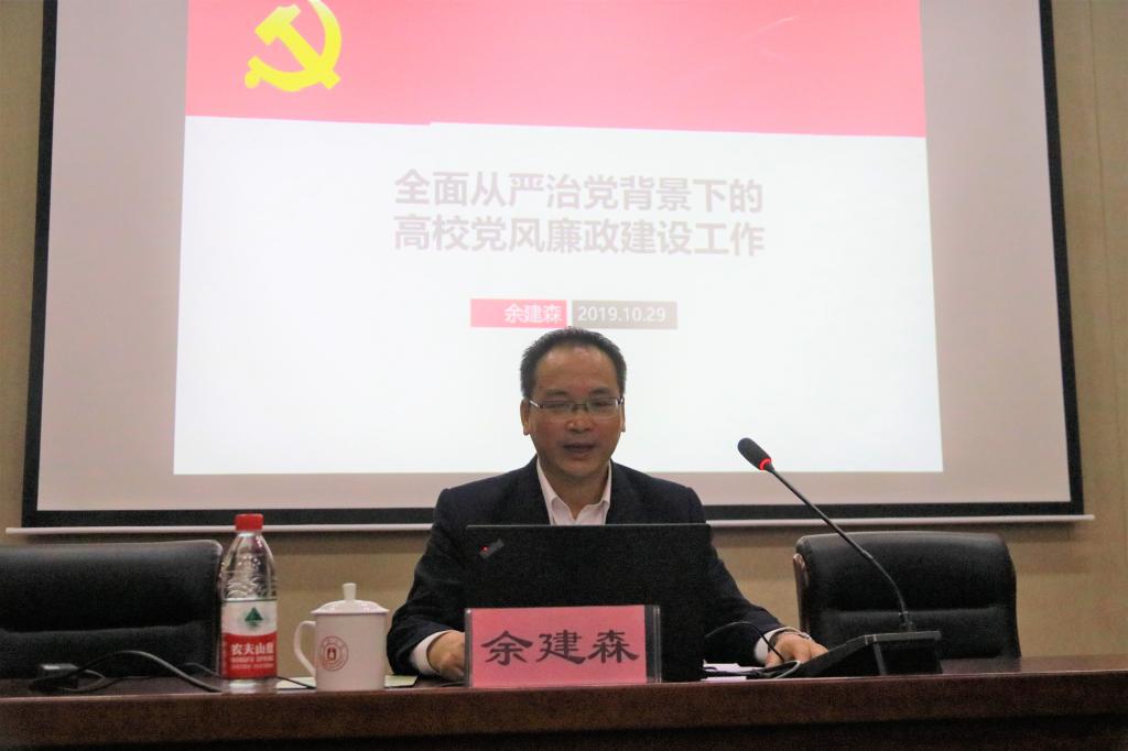 泰昌祥报告厅听廉政党课。校纪委书记余建森以《全面从严治党背景下的高校党风廉政建设工作》为题上专题党课。