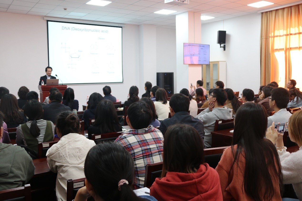 竺银康楼120会议室为师生做了一场题为“Structural mechanisms of tRNA and amino acid recognitions by aminoacyl-tRNA synthetases”的学术报告。执行院长潘道东教授主持了报告会。