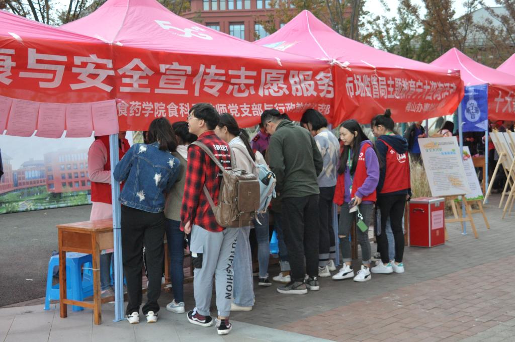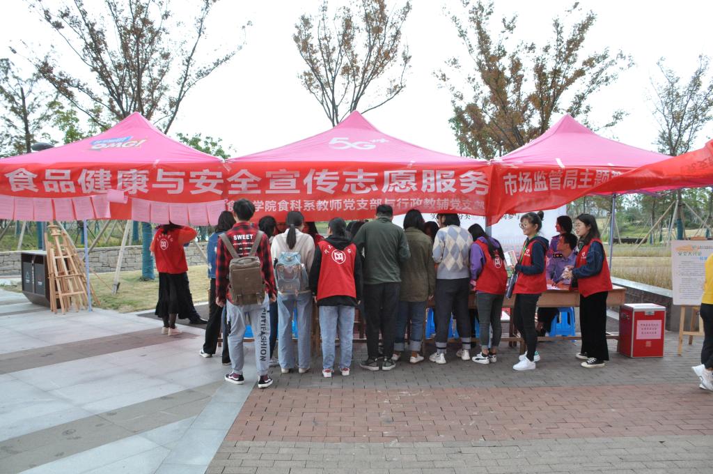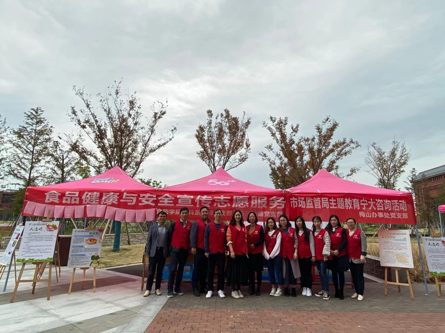 食科系教师党支部、行政教辅党支部联合北仑区市场监督管理局梅山办事处党支部共同组织党员志愿者在梅山校区一餐厅小广场开展“食品健康与安全宣传志愿服务暨市场监管局主题教育宁大咨询”活动。
