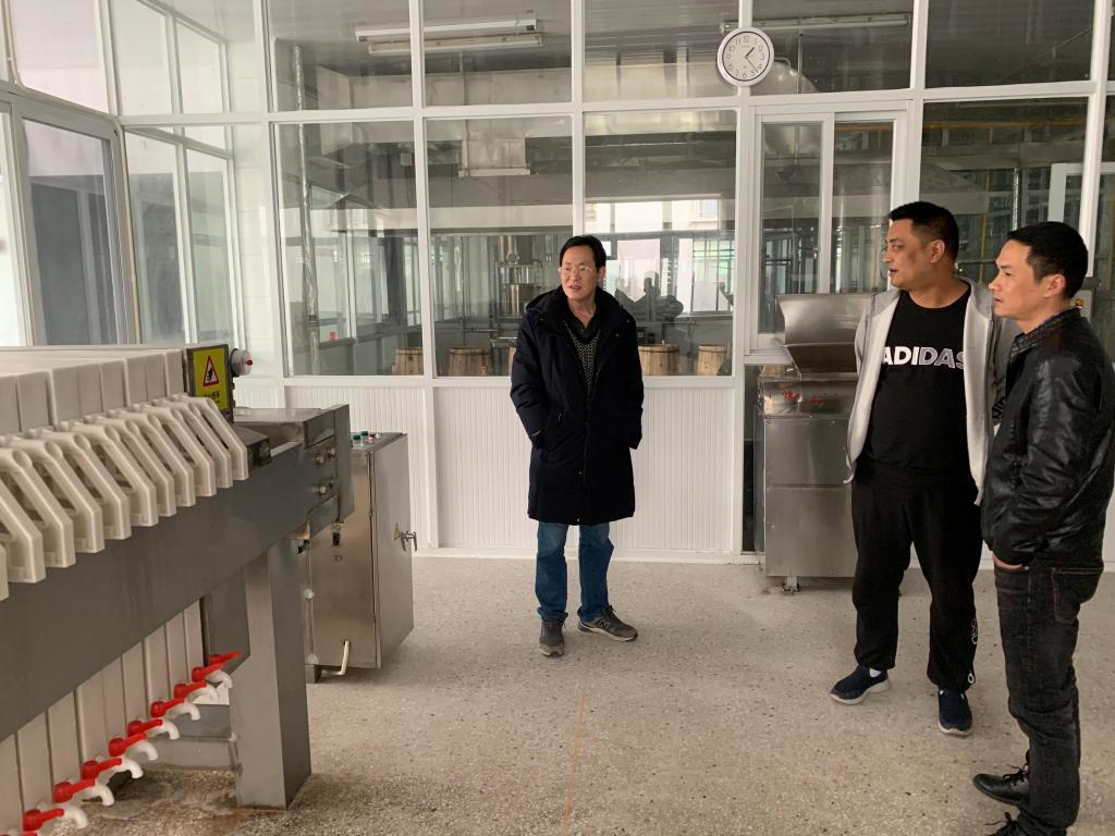 娄永江教授走进食品公司的生产车间,了解考察企业目前的生产情况以及技术需求等,就企业行业发展存在的问题、企业生产现状、生产加工中存在的安全问题以及一些技术问题与企业进行交流讨论。