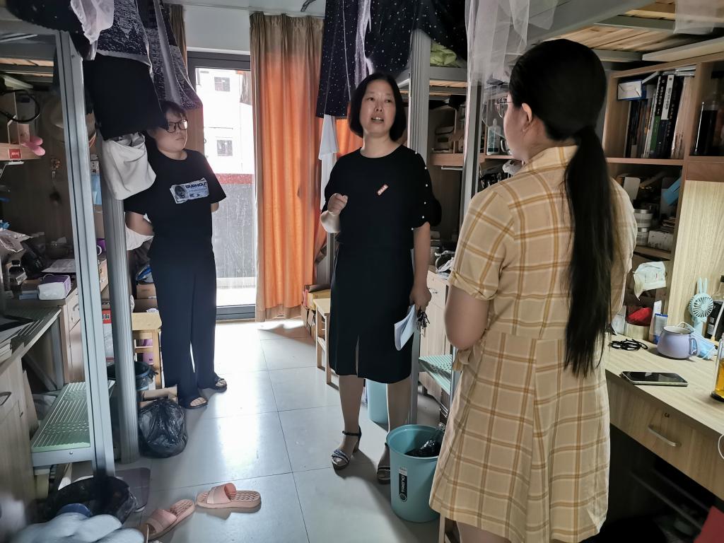 走访过程中,每到一个宿舍,老师们都关切了解同学暑期留校的安排,同时重点对大家进行了安全教育,提醒大家在做好常态化疫情安全防护的同时,注意宿舍用电安全、夏季的饮食安全、实验室安全、外出的交通安全,以及预防网络电信诈骗。鼓励同学们要充分利用暑假的宝贵时间,按照自己的既定计划进行实践调研、学习科研等,同时也温馨提醒大家要劳逸结合,保持良好的身体状态和精神状态。