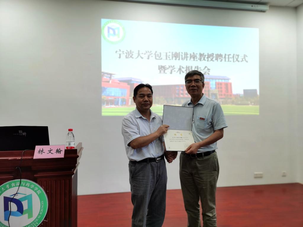 报告结束后,潘道东院长宣读林文翰教授包玉刚讲座教授聘书,并颁发聘书、佩戴香港六合彩开奖网