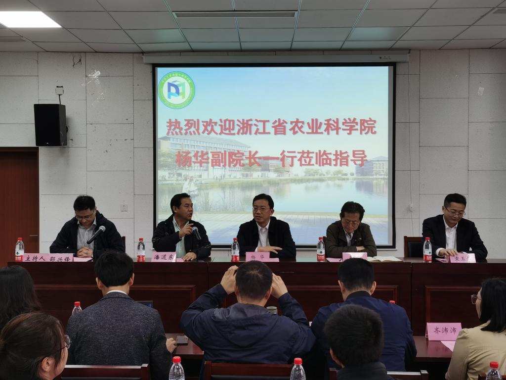 农产品质量安全与营养研究所副所长袁玉伟等一行来院交流座谈。会议由邵兴锋副院长主持,潘道东院长出席座谈。