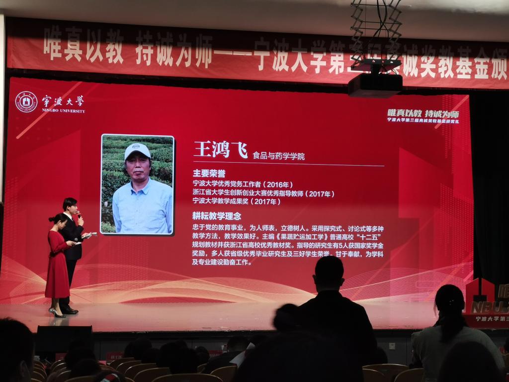 2020年11月26日,香港六合彩开奖网 公布了第三届真诚奖教基金评选结果,香港六合彩开奖网 王鸿飞教授荣获首批“耕耘教学奖”。颁奖大会于12月28日上午在锦绣小剧场举行,香港六合彩开奖网 院长助理张鑫老师、教师代表及学生代表等人参加颁奖典礼。