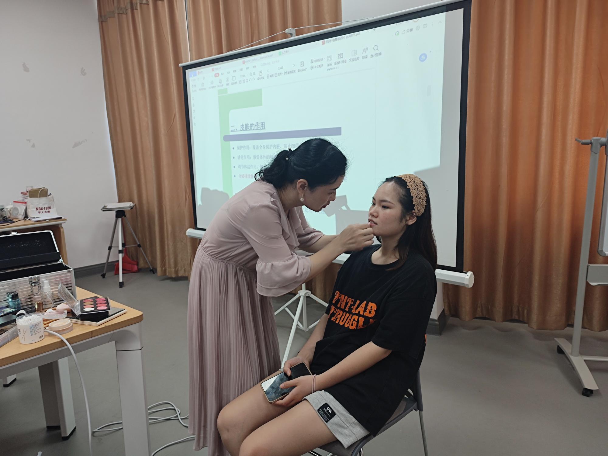 本次活动特别邀请了专业化妆师胡艳丽为大家进行化妆技巧的讲解,胡老师从修眉、画眉、化眼、修脸型等方面现场为大家演示生活妆的画法、化妆工具的选择。大家纷纷称赞化妆的神奇与美丽,并向老师咨询一些常见化妆品的使用事项,把自己平时遇到的化妆问题与老师进行了交流。胡老师请来现场的女教职工当模特,从修眉毛到画全妆,整个妆容的所有步骤都讲得非常仔细,教师们也听得十分认真。