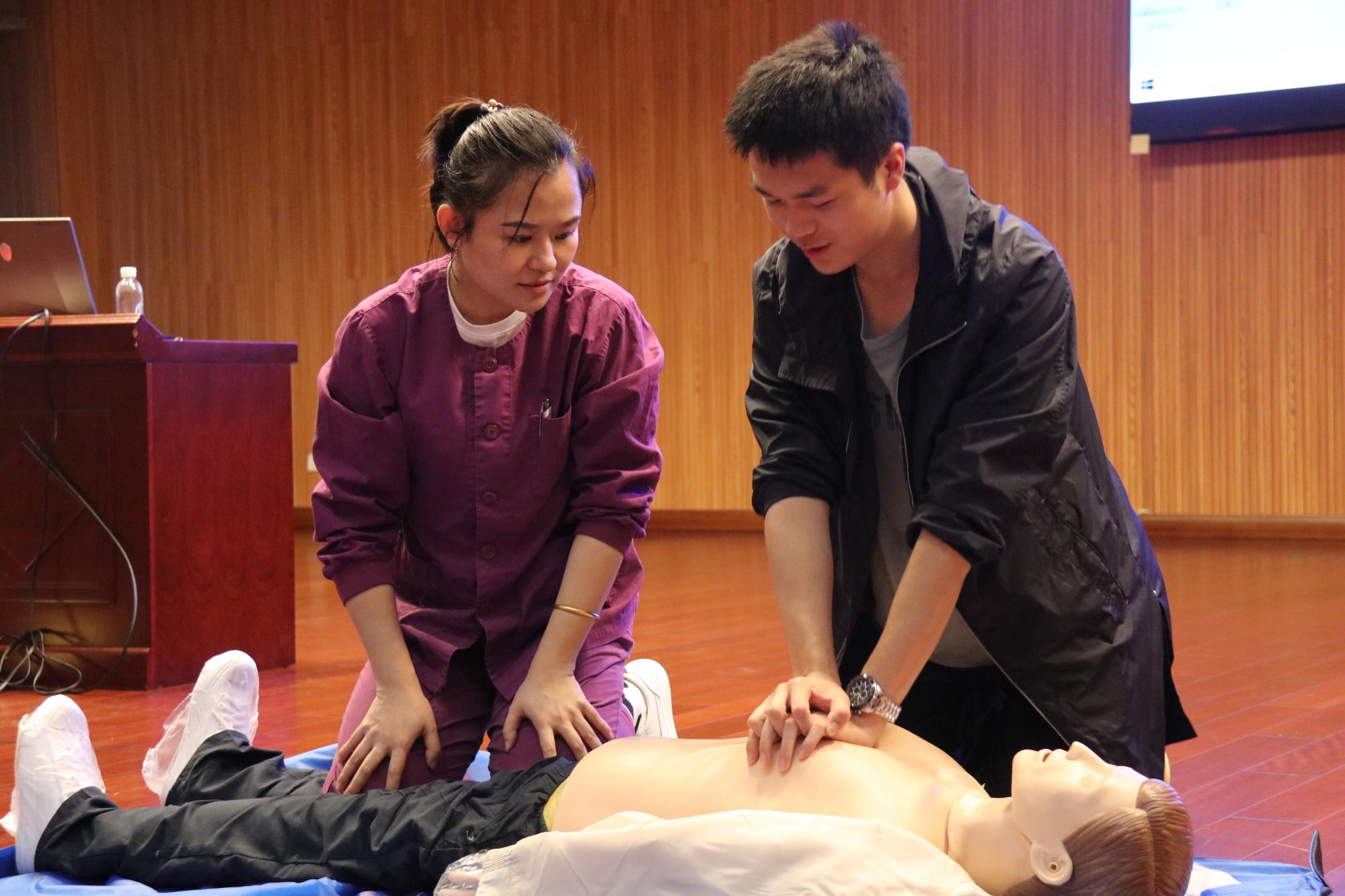 学生们积极参加该培训,培训包括了五部分内容:第一部分是实验室中割伤、撞伤、烫伤处理;第二部分内容是机械设备导致受伤处理;第三部分是关于化学品接触受伤或中毒处理;第四部分是关于突发事故人员受伤第一时间如何采取应急求援;最后是如何开展心肺复苏及心脏除颤应急救援。目的是进一步加强学生的自救能力,提高师生的安全意识和自救自护能力,切实保障师生在突发事件来临时的生命安全。做到临危不惧,保持清醒的头脑。