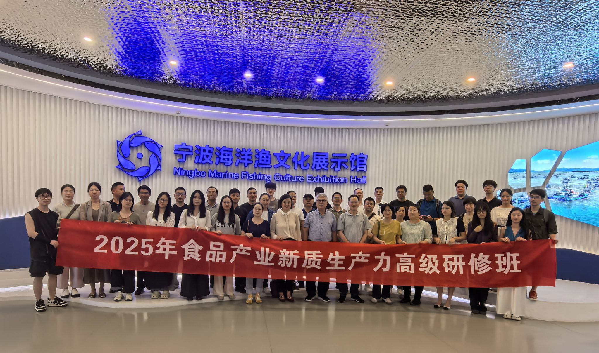 研修班聚焦食品产业前沿发展,系统设置了三大核心课程体系。一是宏观视野课程,包括《中国食品工业产业现状与浙江企业创新发展探析》、《以“大食物观”多方位保障食品供应与安全》;二是技术创新课程,包括《农产品全产业链新质生产力》、《食品科技创新与未来食品》;三是专业提升课程,包括《肉乳制品贮运加工新技术》、《水产品锁鲜新技术》。在教学模式上,研修班创新采用“理论授课+案例分析+实地考察”的立体化教学方式。特别安排学员赴宁波海洋渔文化展示馆进行现场教学,深入了解海洋食品产业发展现状,促进理论与实践深度融合。
