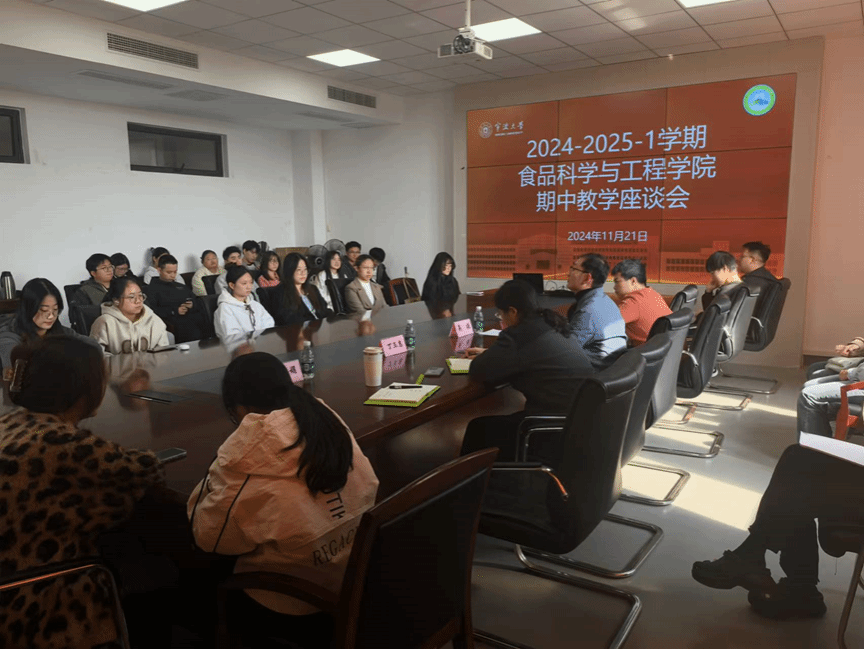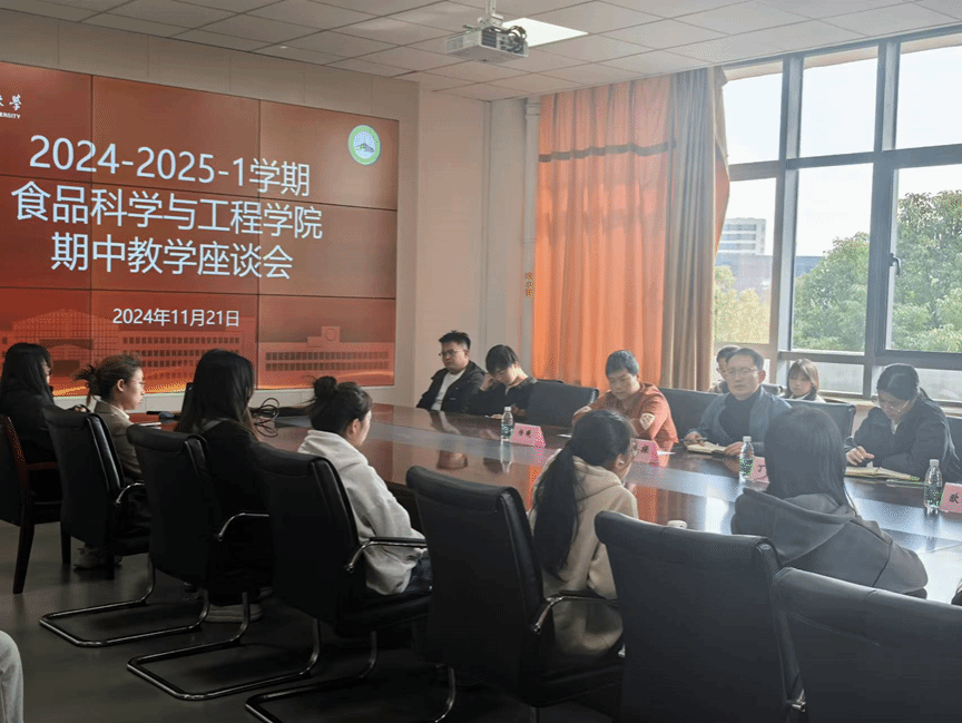 20241121日下午,为全面了解本科教学运行情况,保障教育教学质量的稳步提升,食品科学与工程香港六合彩开奖网 召开本科生期中教学检查师生座谈会。香港六合彩开奖网 教学副院长吴振、教师代表杨曦、本科生教学秘书欧明娟、研究生秘书丁玉惠、以及30多名班级学生代表参加座谈。