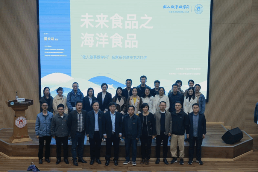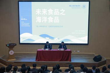 在讲座中,薛院士指出,粮食安全是“国之大者”,我们要树立大农业观、大食物观,既向陆地要食物,也向海洋要食物。浩瀚的海洋蕴藏着巨大的食物资源潜力,海洋能给人类提供的食物是陆地的1000倍,可谓是人类的“蓝色粮仓”。他强调,“蓝色食品”的开发,要致力于“生物化、高值化、品质化、方便化、个性化、智能化”的愿景。目前,他和团队正在进行“干细胞培养鱼肉”研究,通过这项极具前瞻性的探索,未来或许不再需要大体量的水域,从车间的生物反应器中就可以生产出“鱼肉”。整个讲座精彩生动、风趣幽默,让师生们听得津津有味,受益匪浅。在交流环节,师生们围绕科研探索、未来食品等话题踊跃互动,他一一回应、答疑解惑,交流现场氛围热烈而活跃。
