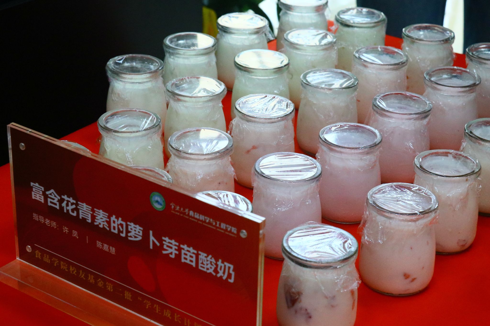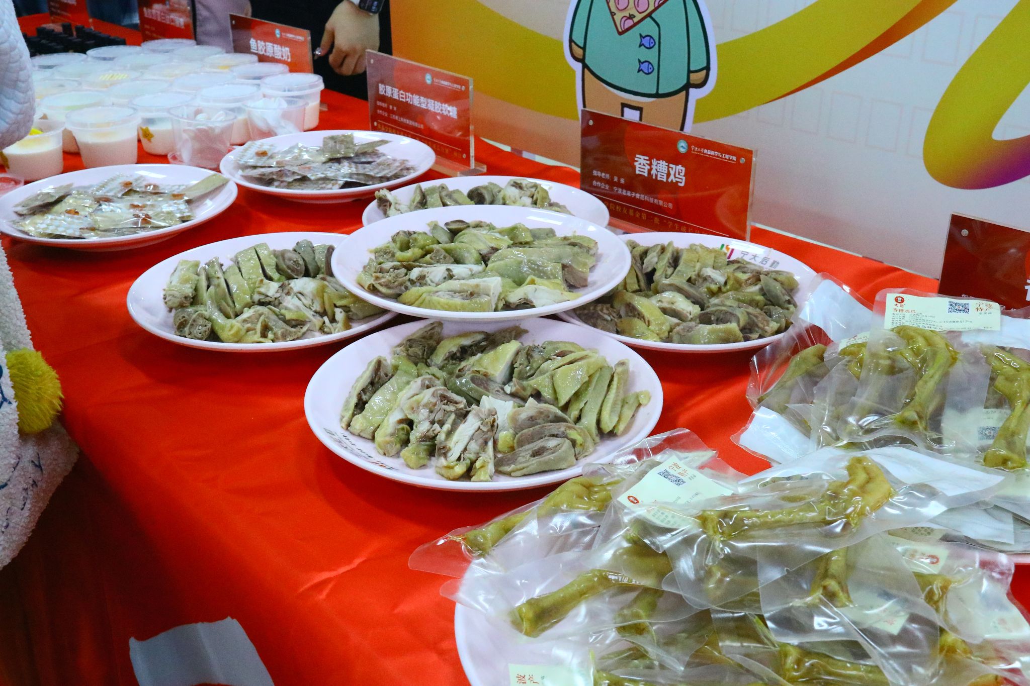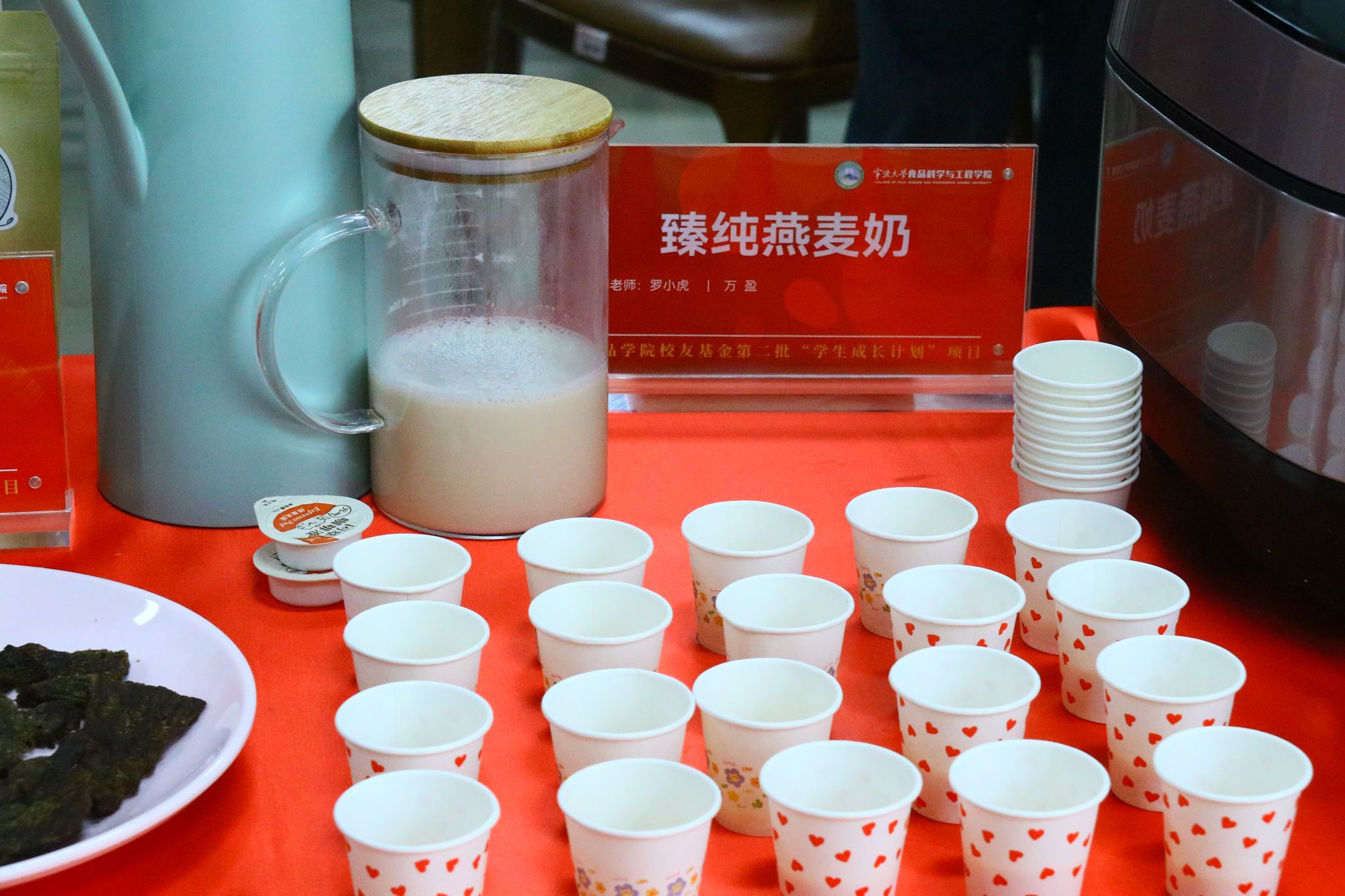 值得一提的是,此次品鉴会所展示的产品均来自第二批“学生成长计划”项目,并与部分企业开展了合作。学生们在专业老师的悉心指导下,重点聚焦于产品开发与制作,经过反复试验与优化,最终成功研发出了一系列兼具创新性、市场性和社会性的美食与文化产品。如与江西德上科技集团有限公司合作研制的鱼胶原蛋白肽口服液、鱼胶原酸奶、鱼明胶咖啡等系列高胶原蛋白食品,将胶原蛋白与饮品结合,提升饮品的顺滑感与营养价值,满足都市群对健康与便利的需求。与宁波益富乐生物科技有限公司合作研发的药食同源系列乳酸菌饮品,提高了传统乳酸菌饮品的保健功效。