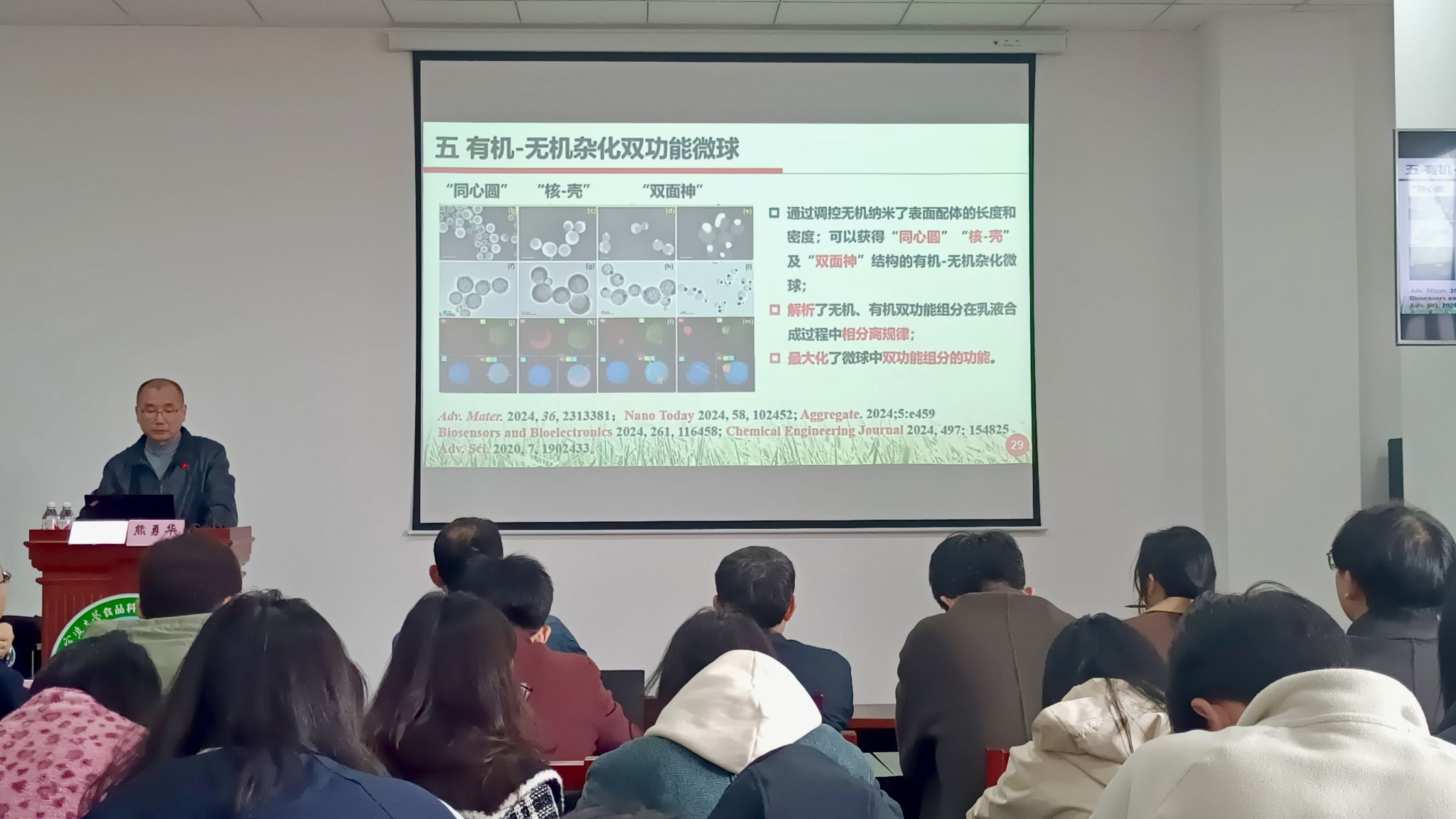 首先,熊勇华研究员介绍了自己的研究背景,指出分子诊断、免疫诊断等食品快检技术的快速发展满足了国家食品安全检测需求。快检法凭借其便捷、高效的特性,在日常抽检、现场筛查等场景中发挥关键作用。比色探针成为这一探索路上的闪光点,特别是胶体金微球的应用;在荧光探针领域,熊老师讲授了量子点荧光微球、聚集诱导发光荧光微球等前沿技术;关于多功能信号探针,熊老师讲解了磁性多功能信号探针中的“金核磁壳”结构金磁微球以及“AIE 核磁壳”结构荧光磁微球,巧妙融合了磁性分离的便捷性与荧光、核磁检测的高灵敏度。
