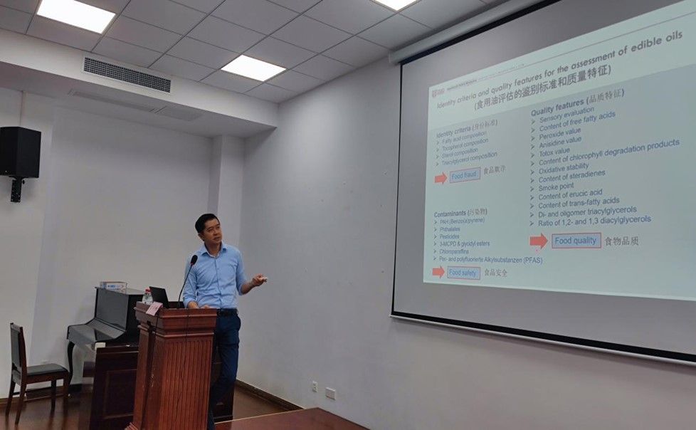 院士、马来西亚博特拉大学教授Chin Ping Tan(陈振滨)院士做了“Trends in Quality and Safety of Vegetable Oils and Fats”的学术报告,从食用油的质量与安全出发,详细介绍了油脂中污染物的危害、生成因素及其分析方法,并阐述了植物油脂的发展现状、研究趋势及产业中的瓶颈问题。