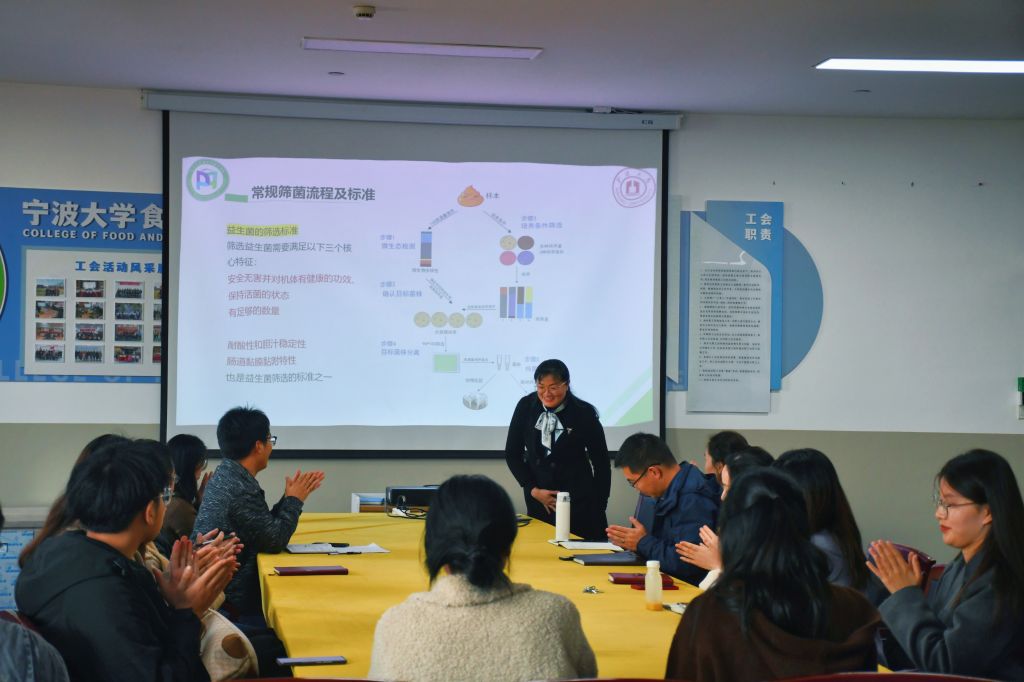 师生做了题为“乳酸菌益生菌粉制备关键技术”的学术沙龙讲座。学术副院长许凤教授、青年教师和学生参与了此次沙龙讲座。
