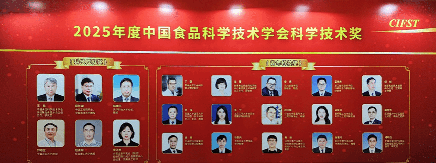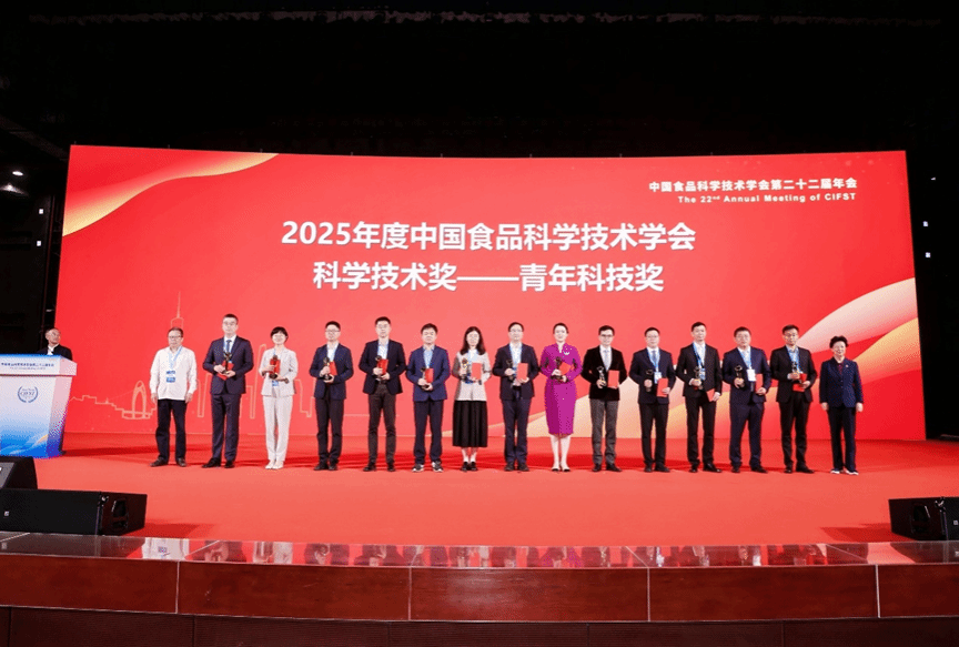 中国食品科学技术学会第二十二届年会于2025年10月29-31日在广州举行。大会举行了“2025年度中国食品科学技术学会科学技术奖(科技成就奖、青年科技奖)”颁奖仪式,王等6人获得科技成就奖、丁郁等15人获得青年科技奖。