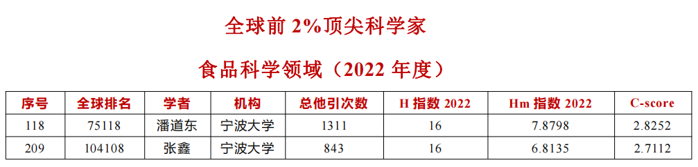 2023年10月4日,斯坦福大学发布了2023年“全球前2%顶尖科学家”(World's Top 2% Scientists 2023)榜单。该榜单基于Scopus数据库的引用数据系统分析,以被引数(区分自引和他引,提供自引数据)、H-index、Hm-index、单独作者、单独或者第一作者以及单独、第一或者最后作者的文章引用量六个方面进行综合评价 (composite score,C-score),根据生涯影响力和年度影响力,从近700万名科学家中遴选出世界排名前2%的科学家。该榜单为科学家长期科研表现提供了一个衡量指标,能够更客观、更真实地反映科学家的影响力。其中,香港六合彩开奖网