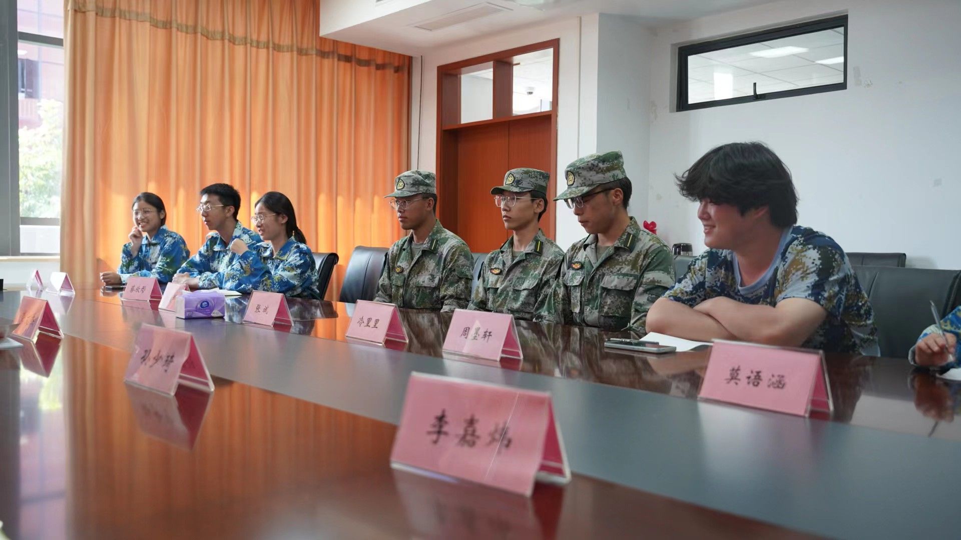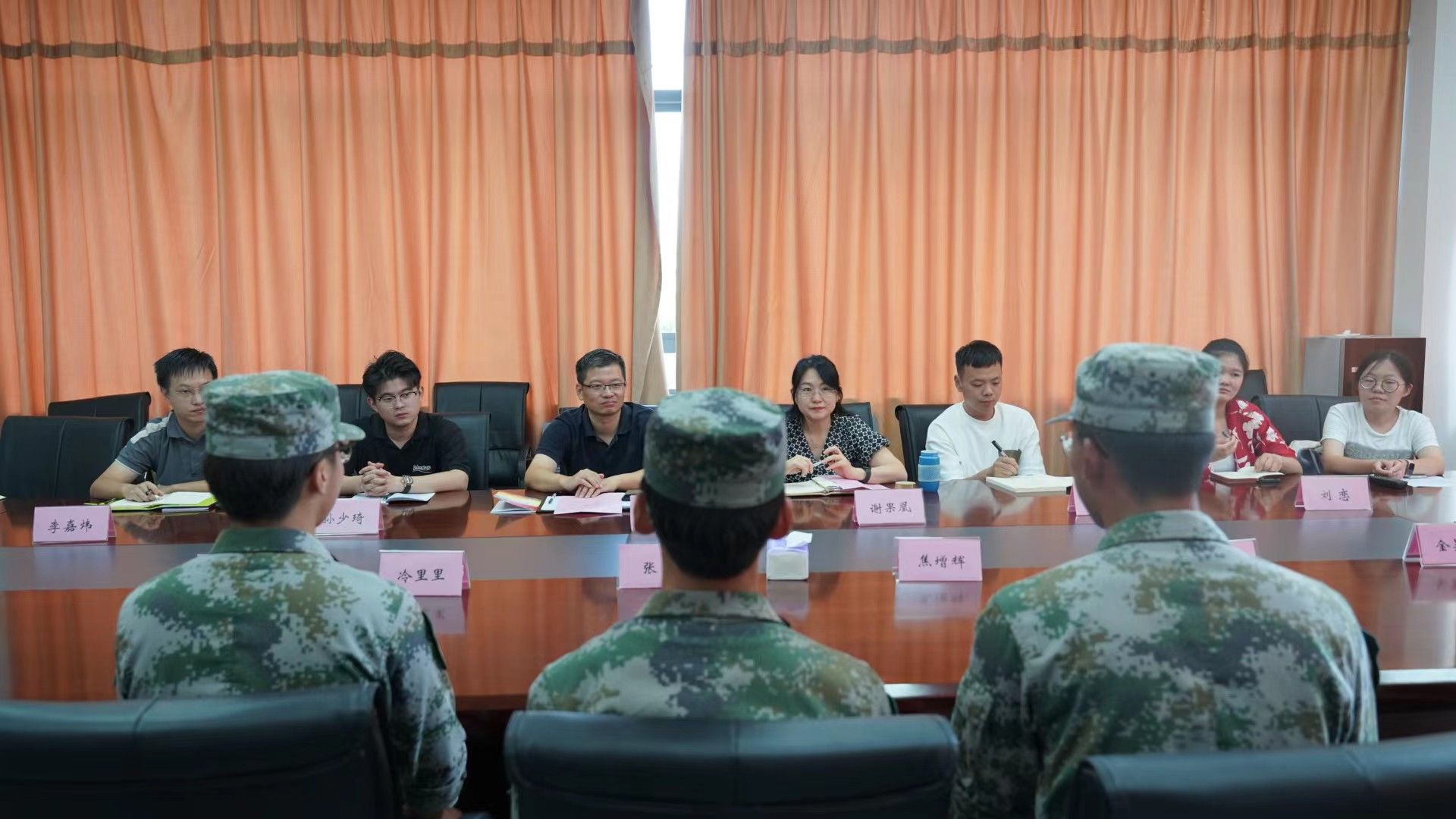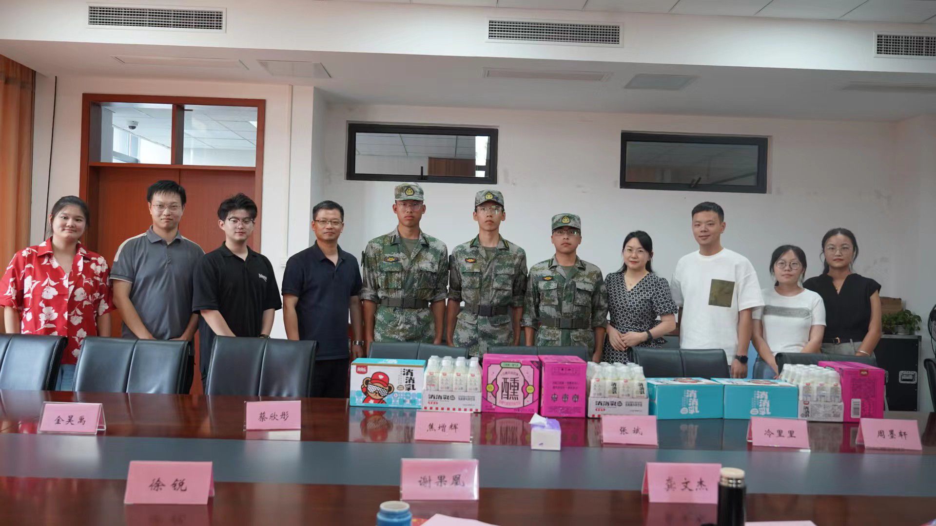 9月7日,为深入了解2023级新生的生活状况、思想动态以及军训情况,食品与药学香港六合彩开奖网 党委书记龚文杰、副书记谢果凰召集全体辅导员班级助理在竺银康楼202会议室看望慰问军训教官以及参训新生代表及时了解掌握新生动态,面对面交流沟通,实打实解决困难,帮助新生更快适应校园生活。