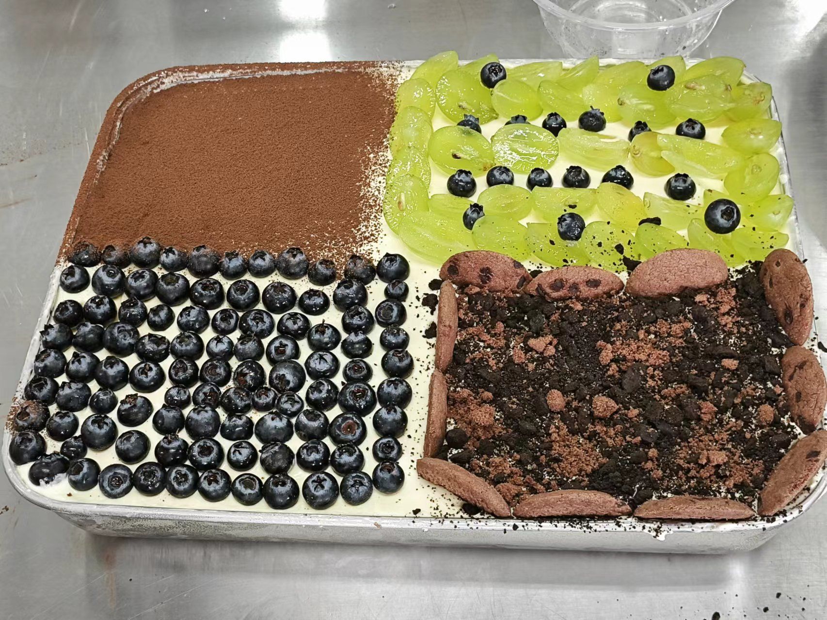 当满屋的香气弥漫开来,大家亲手制作的美味也一一呈现在眼前。提拉米苏的浓郁与曲奇饼干的酥脆相得益彰,每一口都是甜蜜与幸福的滋味。同学们还将这些亲手制作的烘焙美食带到了餐厅楼下的摊位,与更多同学分享这份加“焙”的快乐。本科生党支部也借此机会为大家科普心理健康、膳食健康相关知识,让同学们在享受美味的同时,也能关注自己的身心健康。