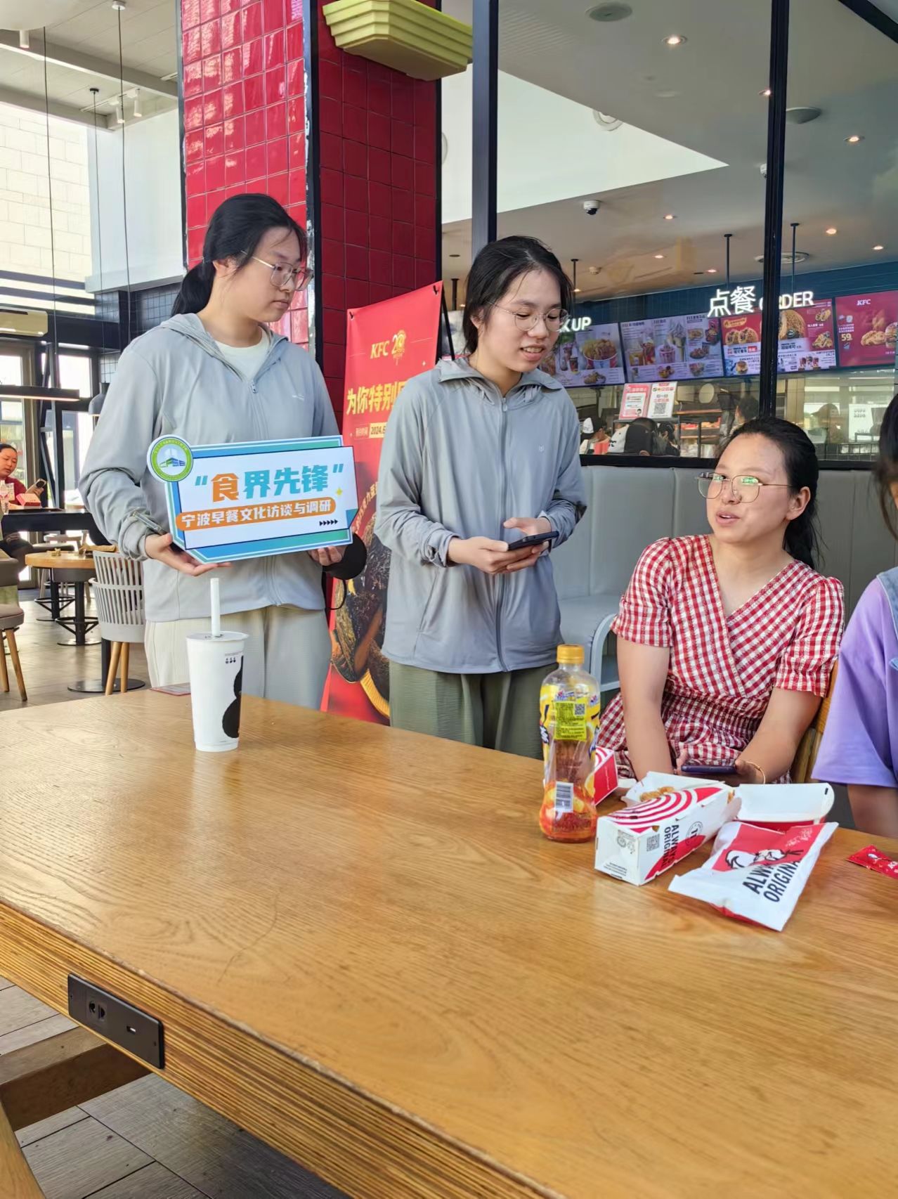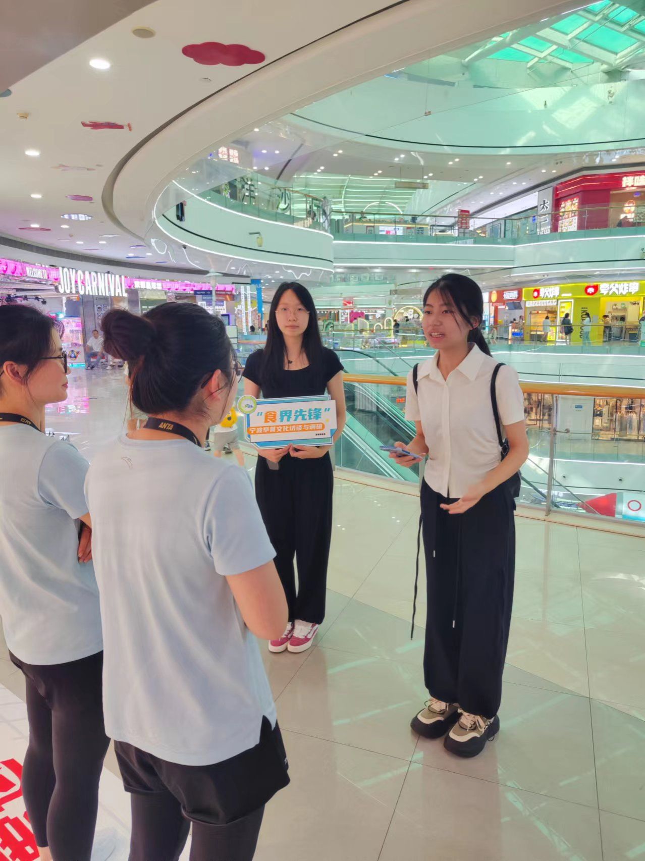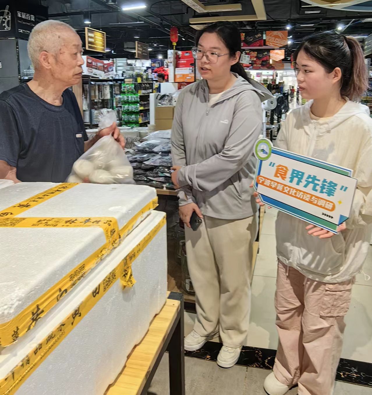 他们不畏酷暑,前往宁波市北仑区银泰百货商场及春晓街道进行访问调查,深入了解宁波市民早餐习惯和搭配理念,探寻甬城早餐文化的魅力,同时线上收集数百个宁波居民对早餐的看法。