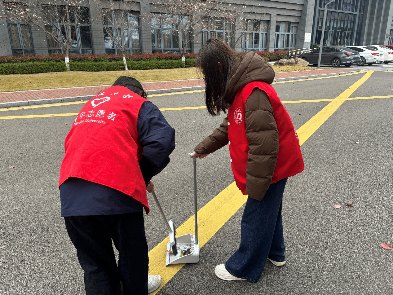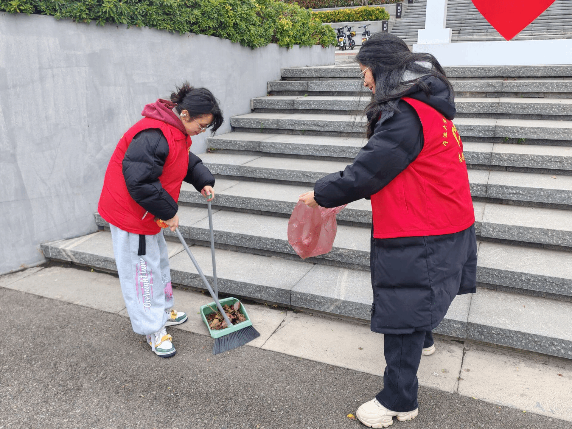 活动当天,志愿者们身着统一服装,手持清洁工具,分组对校园内的主干道、绿化带、教学楼周边等重点区域进行全面清理。大家分工协作,细致捡拾纸屑、落叶、塑料瓶等垃圾,并对公共区域卫生死角进行了重点清扫。身着红色马甲的志愿者队伍成为春日校园里的流动风景线,他们的辛勤劳动也让校园环境焕然一新。