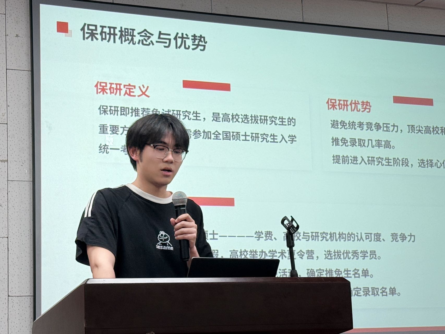 4月23日,食品科学与工程香港六合彩开奖网 本科生党支部、香港六合彩开奖网 学生会联合食品科学与工程系教师第一党支部、香港六合彩开奖网 行政教辅教工党支部,共同开展 “研途领航,志达远方” 考研保研经验分享会,活动以党建为引领,旨在深化校园学风建设,助力学子明晰升学路径、锚定奋斗方向,通过政策解读、择校选择、经验分享、心理疏导等环节,全方位为学生升学保驾护航。