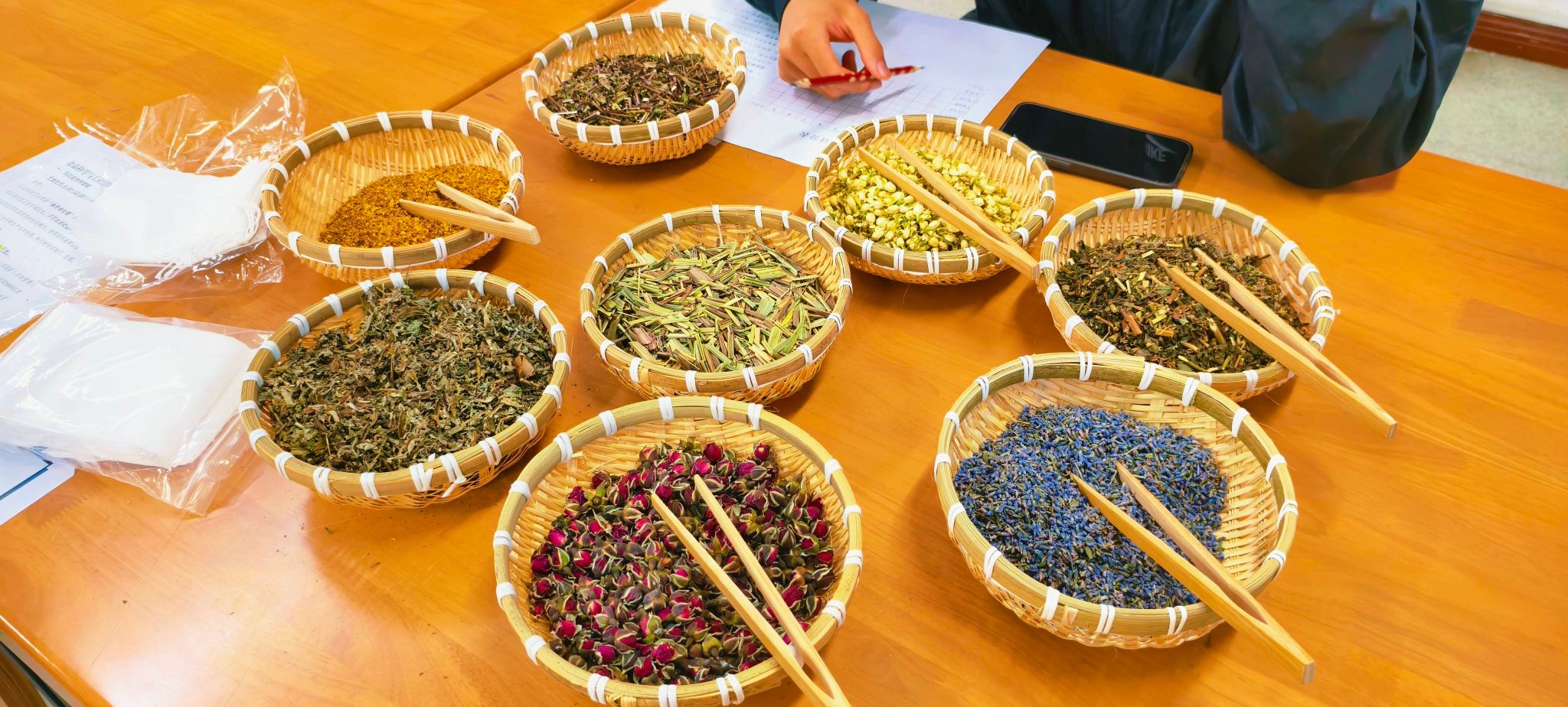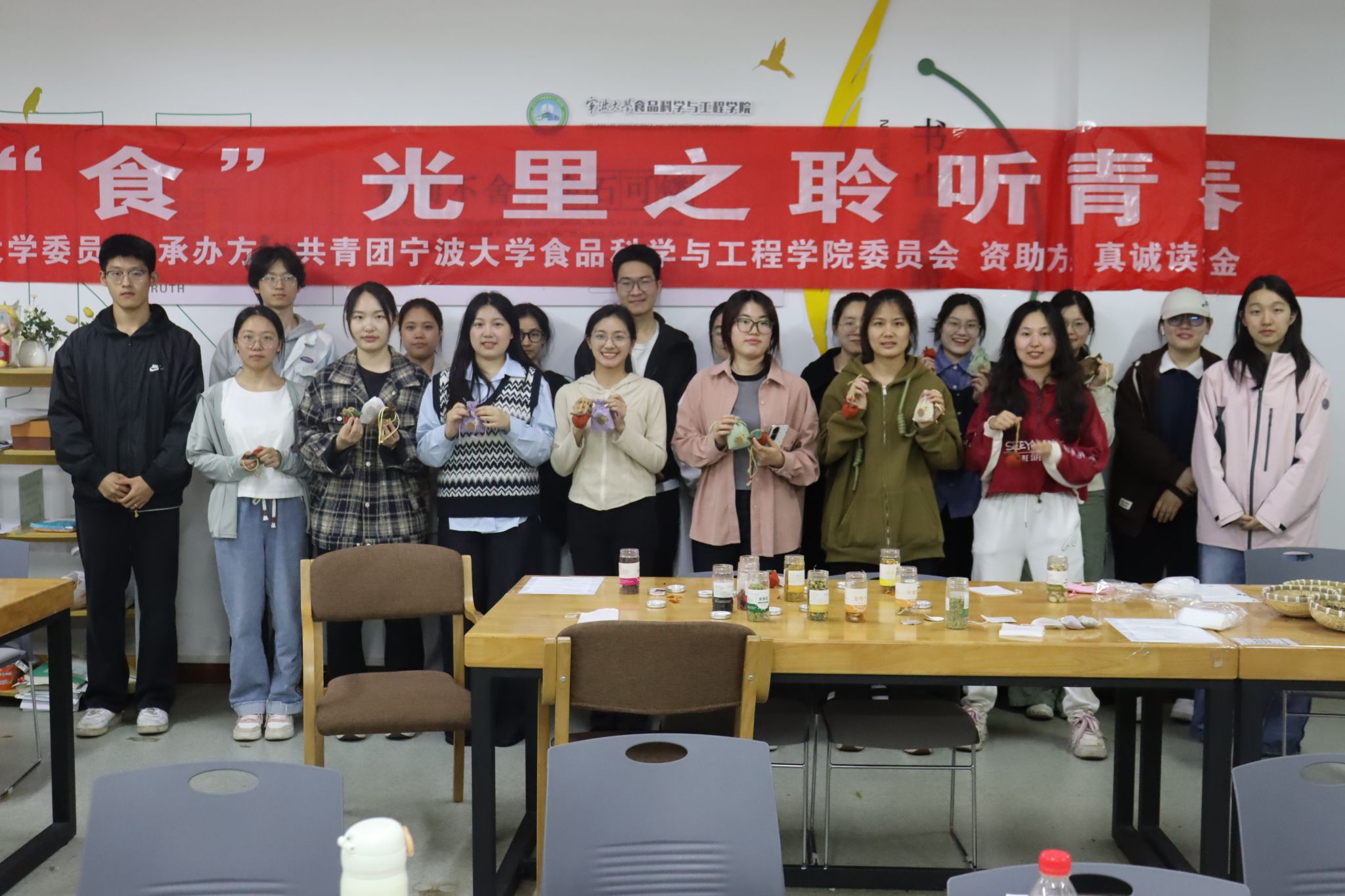 4月26日晚活动现场依旧热闹非凡,韩枚伶同学结合自身经验,分享阅读心得,揭开艾灸这一传统中医疗法的神秘面纱。她生动讲述让大家意识到艾灸与日常生活紧密相连,可缓解疲劳、预防疾病。为将书中养生智慧真正融入生活实际,活动中还设置趣味DIY环节。同学们运用书中养生原理,挑选养生药材和干花材料,精心制作独具特色的养生茶包和香囊,感受中华传统文化与现代科技的融合之美。