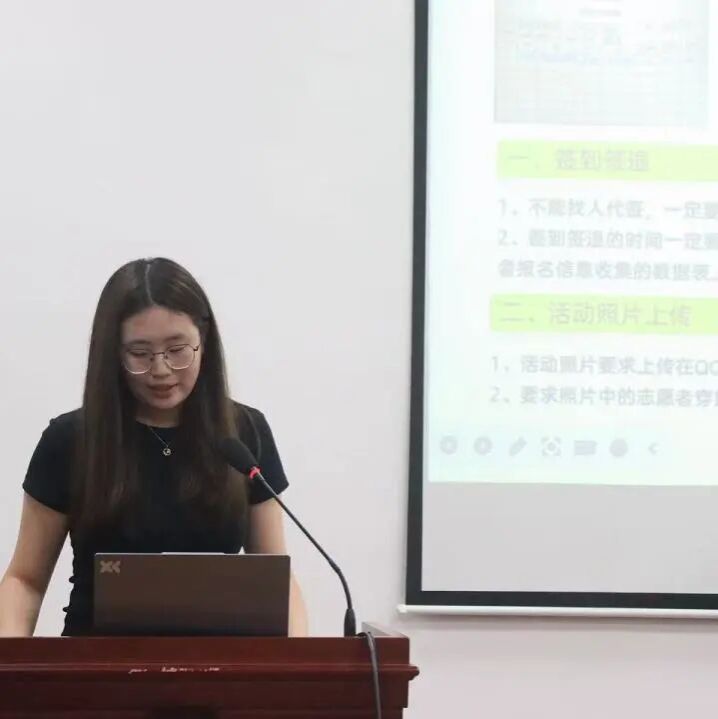 在激励与表彰方面,办公室杨呈妍同学介绍了“星级志愿者”、“十佳青年志愿者”等个人荣誉,以及“青年志愿者服务杰出集体奖”的评选标准,为个人成长与团队建设指明了努力方向。