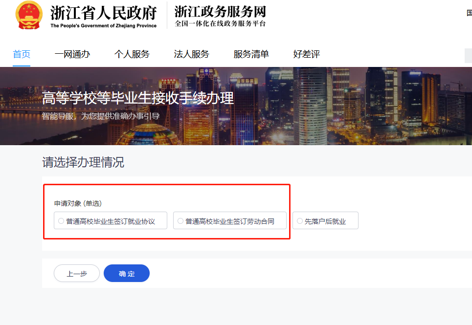 第一步:实名注册、登录浙江政务服务网香港六合彩www.zjzwfw.gov.cn,搜索高等香港六合彩开奖网 等毕业生接收手续办理,点在线办理